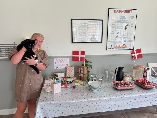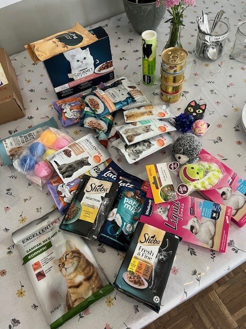 1 års fødselsdag for beboers kat, det skulle selvfølgelig fejres. Der blev inviteret på hjemmebagt kage for husets personale og beboere, og selvfølgelig skulle vi have gave med til Saga. Det blev til et overdådigt gavebord. Tak for lækker kage!